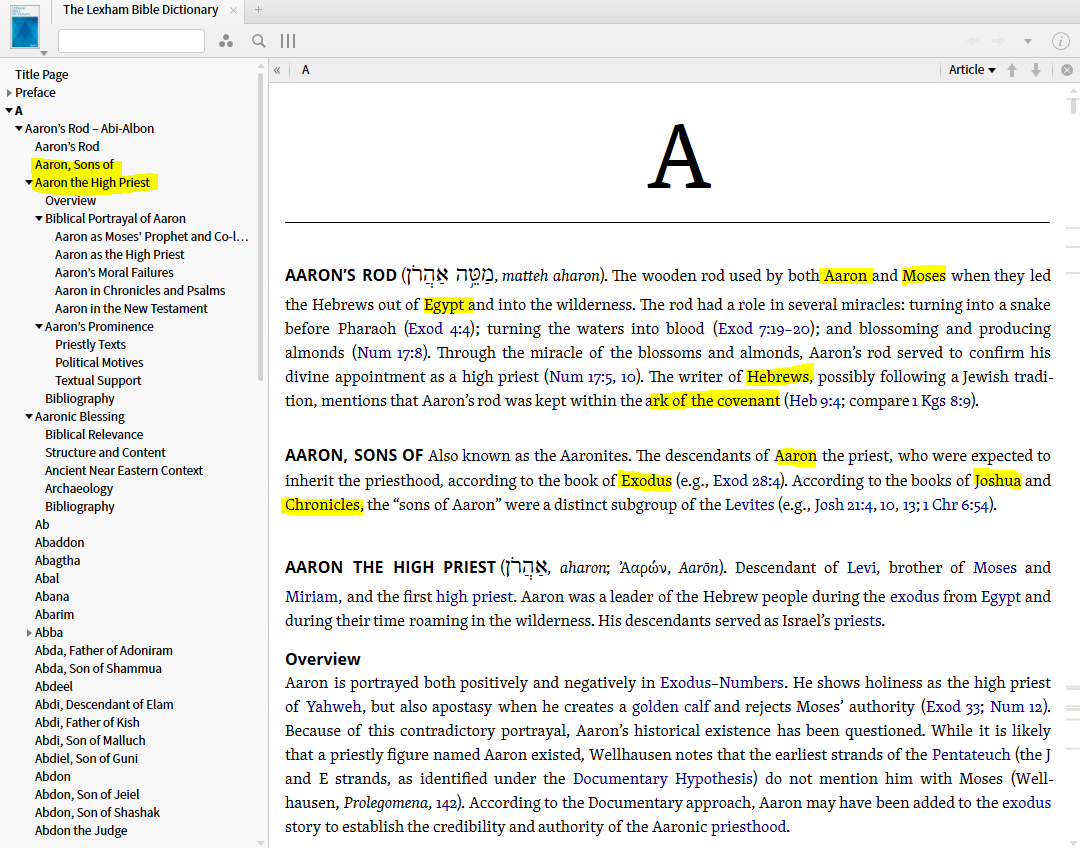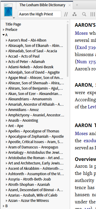 Using Logos 6.13.0.0020 on Windows 7, found links in LBD to other headwords in LBD do not work although cursor changes to hand over link words plus puzzled by "Aaron, Sons of" being indented under "Aaron's Rod" in the Table of Contents: