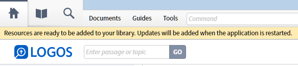 My machine is "pretty much" back to normal, but now I'm having a strange issue in Logos. When I open Logos, I now see a message that says "Resources ready to be installed", but when I restart Logos, the message remains and doesn't clear. What do I need to do to clear this message?
