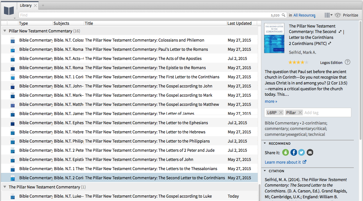 I got the new volume of Luke for Pillar today. But it made a new series tab under the Library list. This should have been added to the above tab for Pillar New Testament Commentary with 16 volumes in it, and no new tab for (The Pillar New Testament Commentary) should have been made.