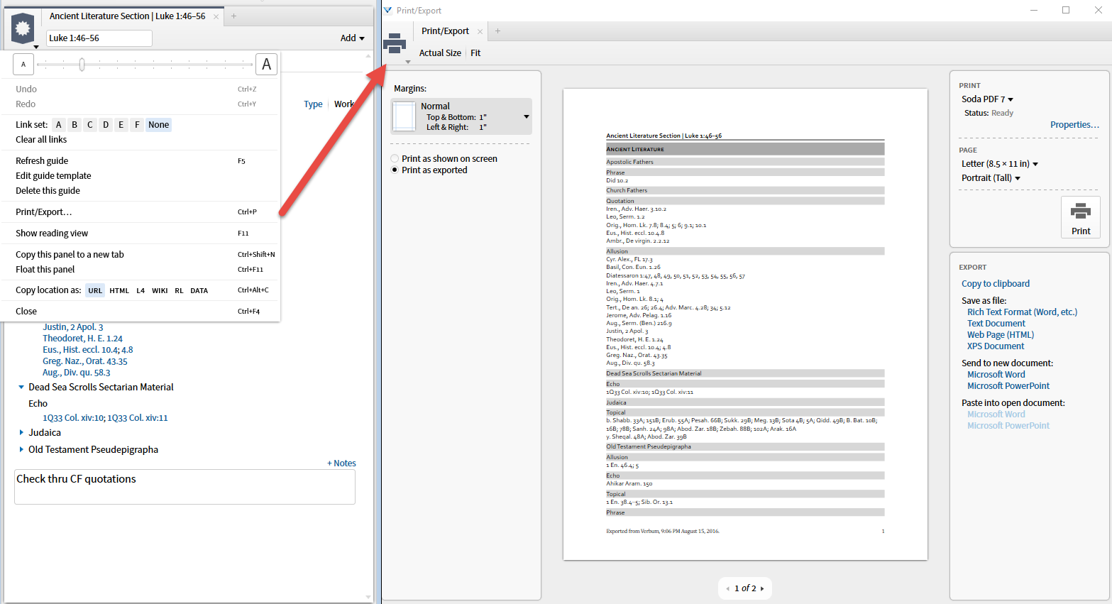 - Save as Passage List: Section Bar Menu