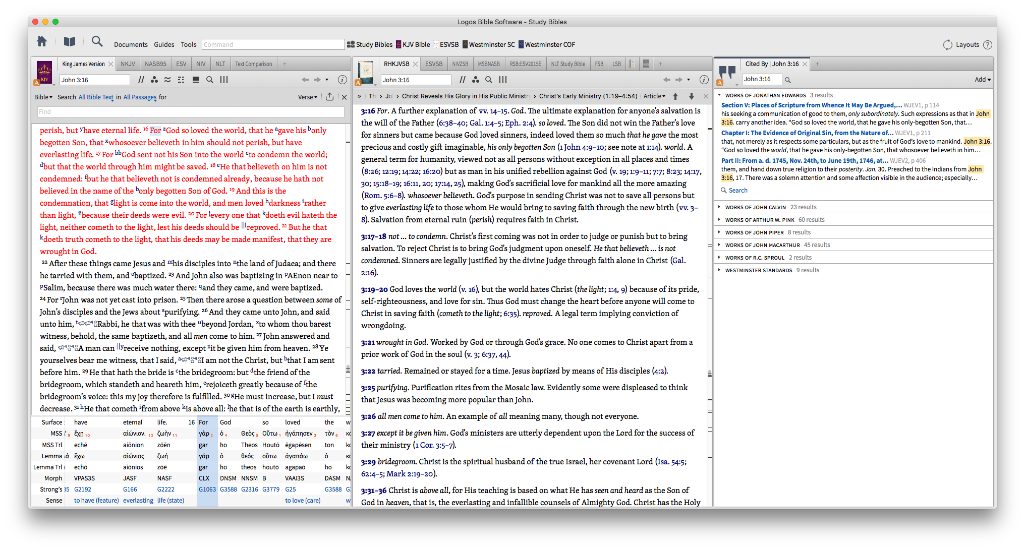But I also have a study layout where verses cited in the same volume are listed and if I want to see what Jonathan Edwards said about say John 3:16 it will cause me to lose my place in Brainerd's journal.