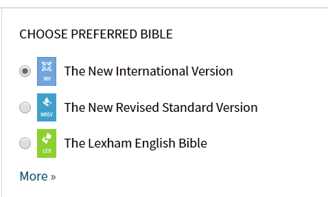 This creates a panel on the homepage allowing you to choose your preferred Bible - which will appear on hover and in other places
