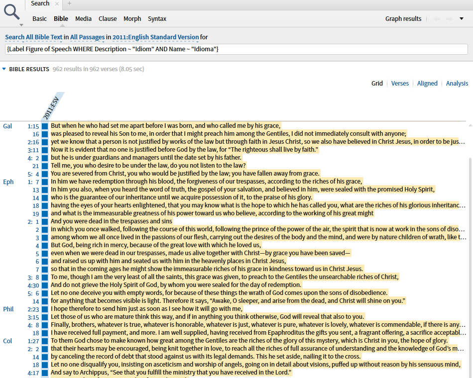 This recent "How to identify idioms in the ESV and NASB" LogosTalk blog post is pretty cool.
