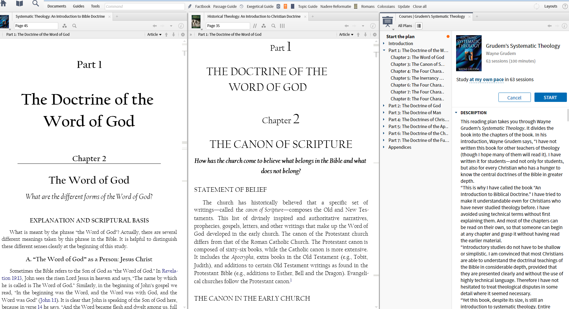 Let's say I wanted to do Grudem's Systematic in the L7 course selection, but I also wanted to read Allison's Historical Theology along side of it and do both either in the 63 sessions or At My Own Pace in 63 sessions.