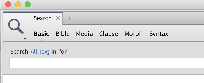 I was trying to do a basic search. I changed my search group from "in ALL" to "Mytag:" and my tagged theology set. I mistyped and put ; instead of : but caught my mistake and fixed it before hitting enter. I did not use the dropdown + clicking on the list of tagged groups. The result was that the "in ALL" dropdown option disappeared! I had "in" and then nothing. Opening a new search tab and setting it to basic search presented the same problem. Functionality was restored when I changed to a different layout. See screen shot.