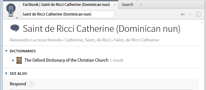 This should be Saint Catherine de Ricci - two of the alternative names are also in a very strange format