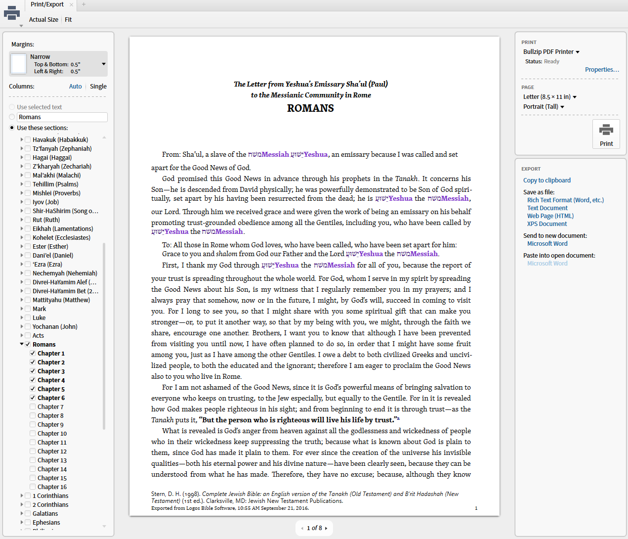 Thankful for Logos visual filter option to hide chapter and verse numbers, which can be printed: