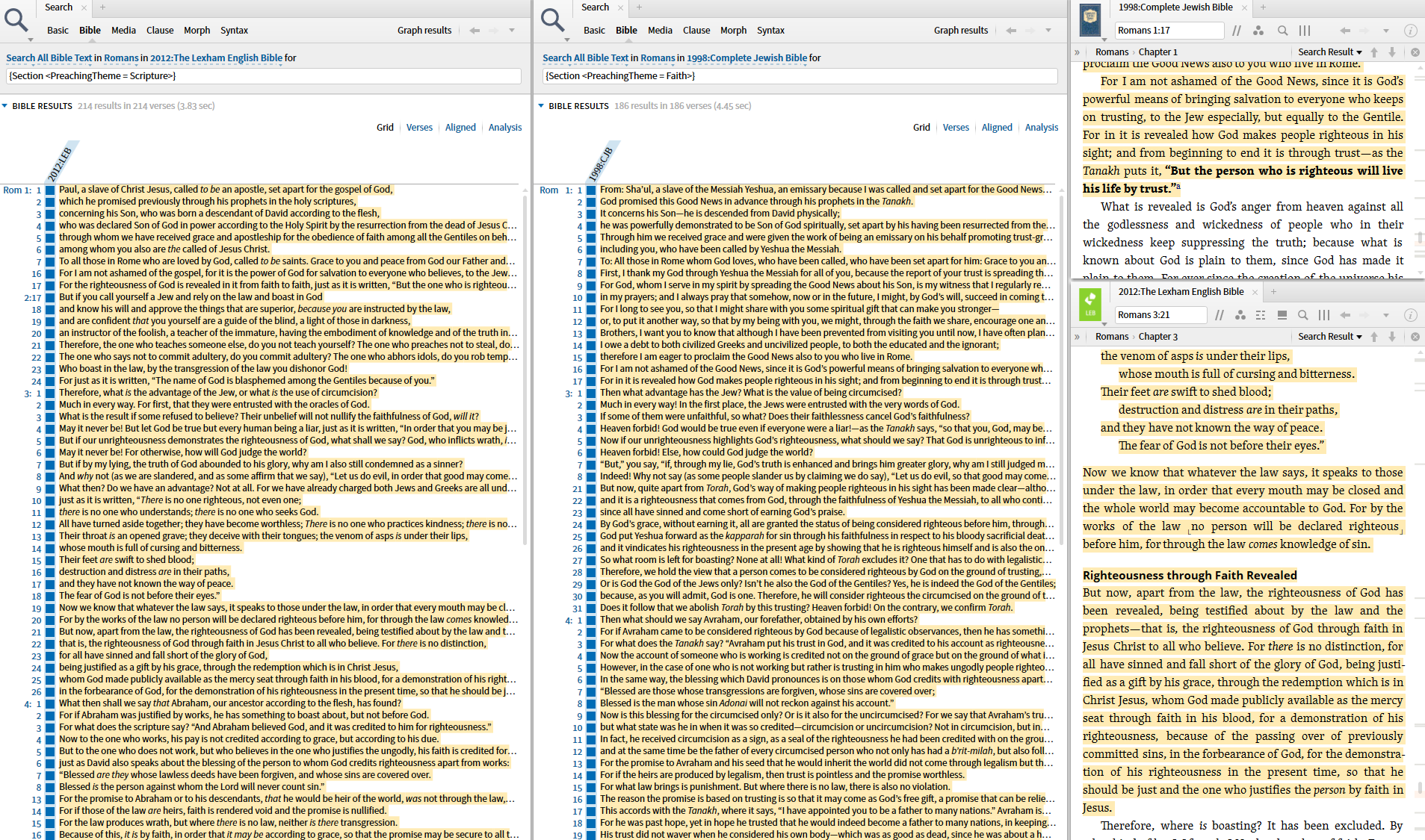 Thanks and probably a better? way to do an inductive study anyway. To be frank, I'm finding my inductive skills are being dulled a tad the more I lean on L7/LN to do the work for me. Don't get me wrong, I uber like the FL product, but sometimes I miss a hard copy of a Bible and a pad of paper and pencil on a dark oak desk with the aroma of coffee floating in the air.