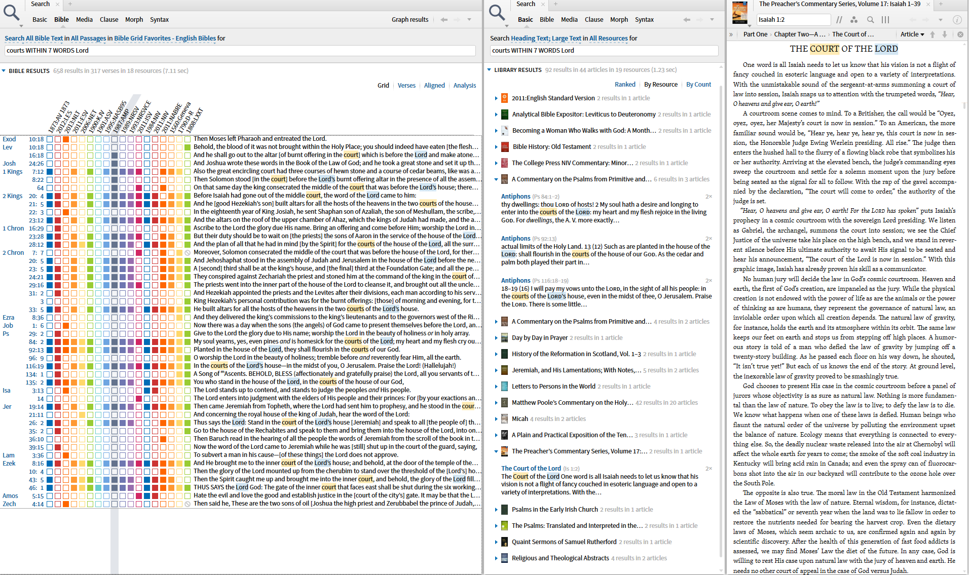 What exactly is meant by "courts of the Lord" and what is the best way to use Logos to find out? How about a Bible search for:courts AND Lord