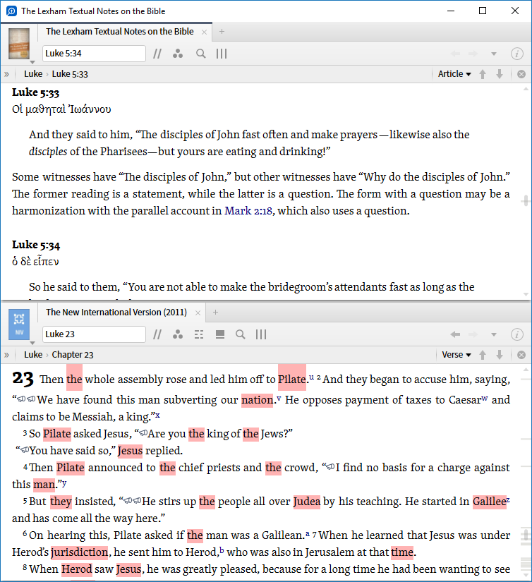 - No words are highlighted in the Bible, because The Lexham Textual Notes on the Bible isn't a lexicon. It's providing specific information about individual verses, not general information about lemmas wherever they may be found.