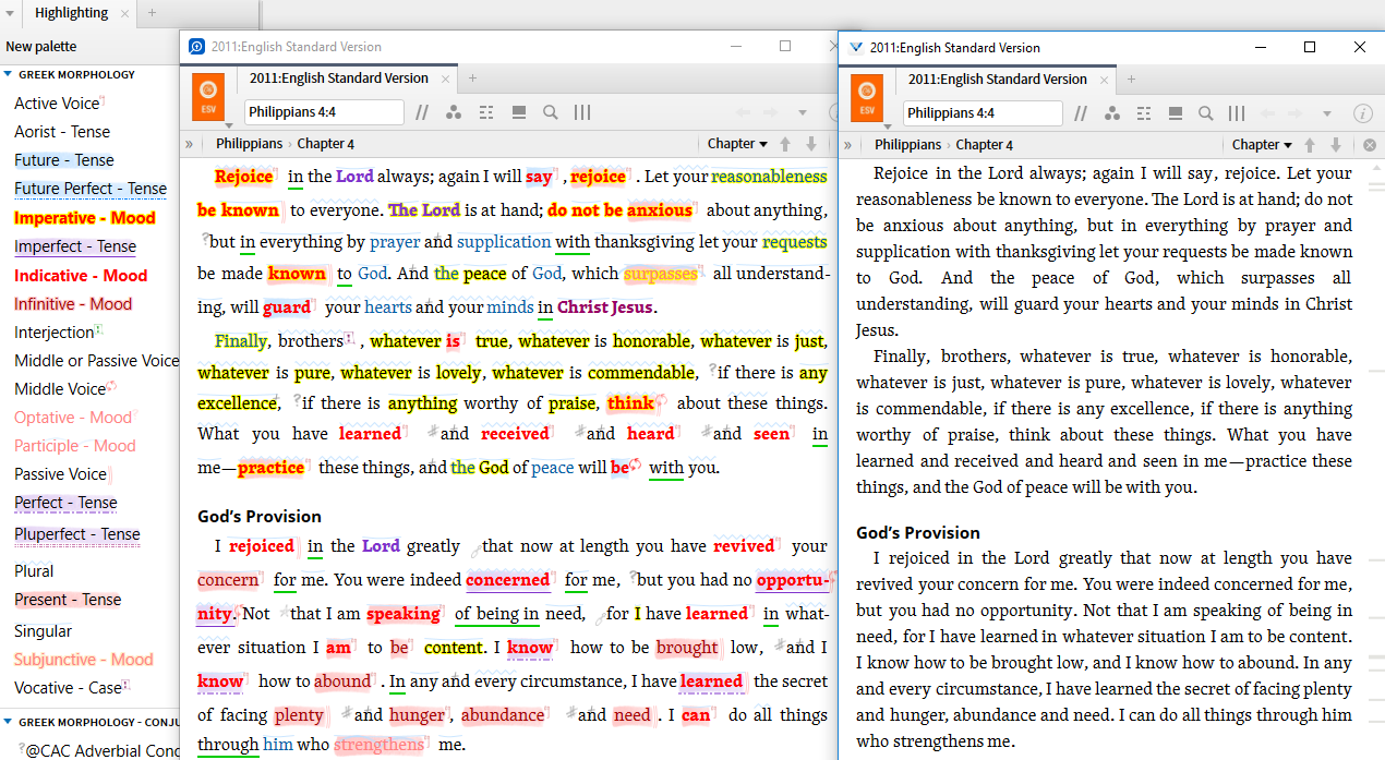 Related question - Is there any forum, wiki or video resource that might help me learn how various people are managing resource windows/tabs when they are teaching and may need to open various commentaries, dictionaries and guides? (I am struggling to come up with a consistent approach, because with every cross-reference the Bible text jumps to different locations and tabs multiply like rabbits.)