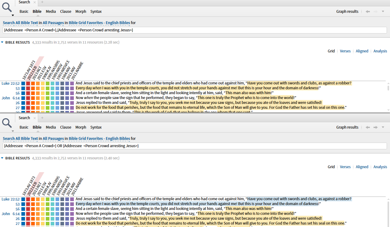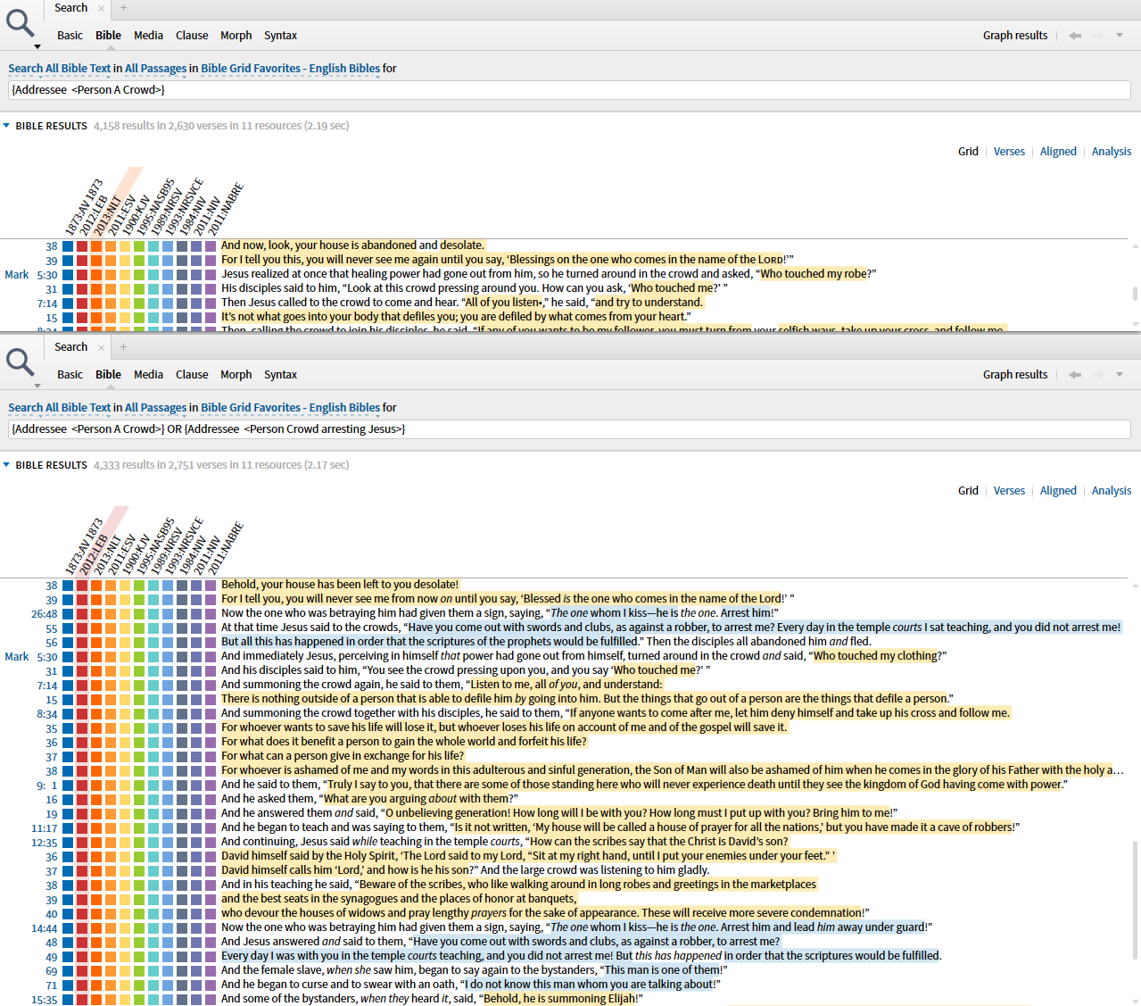 Logos 7.1 Release Candidate 1 shows <Person A Crowd> does not include Mt 26:48, Mt 26:55, and Mt 26:56 for <Person Crowd arresting Jesus>