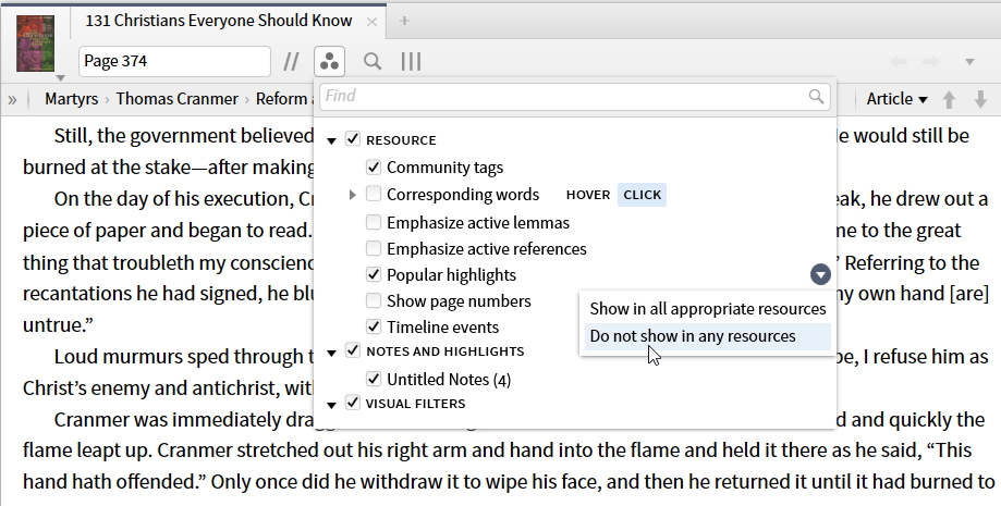 In Accordance, when you open a lexicon from a text, the verse you opened the lexicon from is highlighted in red if it is mentioned in the lexicon. For instance, if you open HALOT by triple clicking on "re'shit" in Genesis 1:1, the lexicon opens to the entry for the word, and under the first meaning the reference Gen1:1 is automatically highlighted in red.