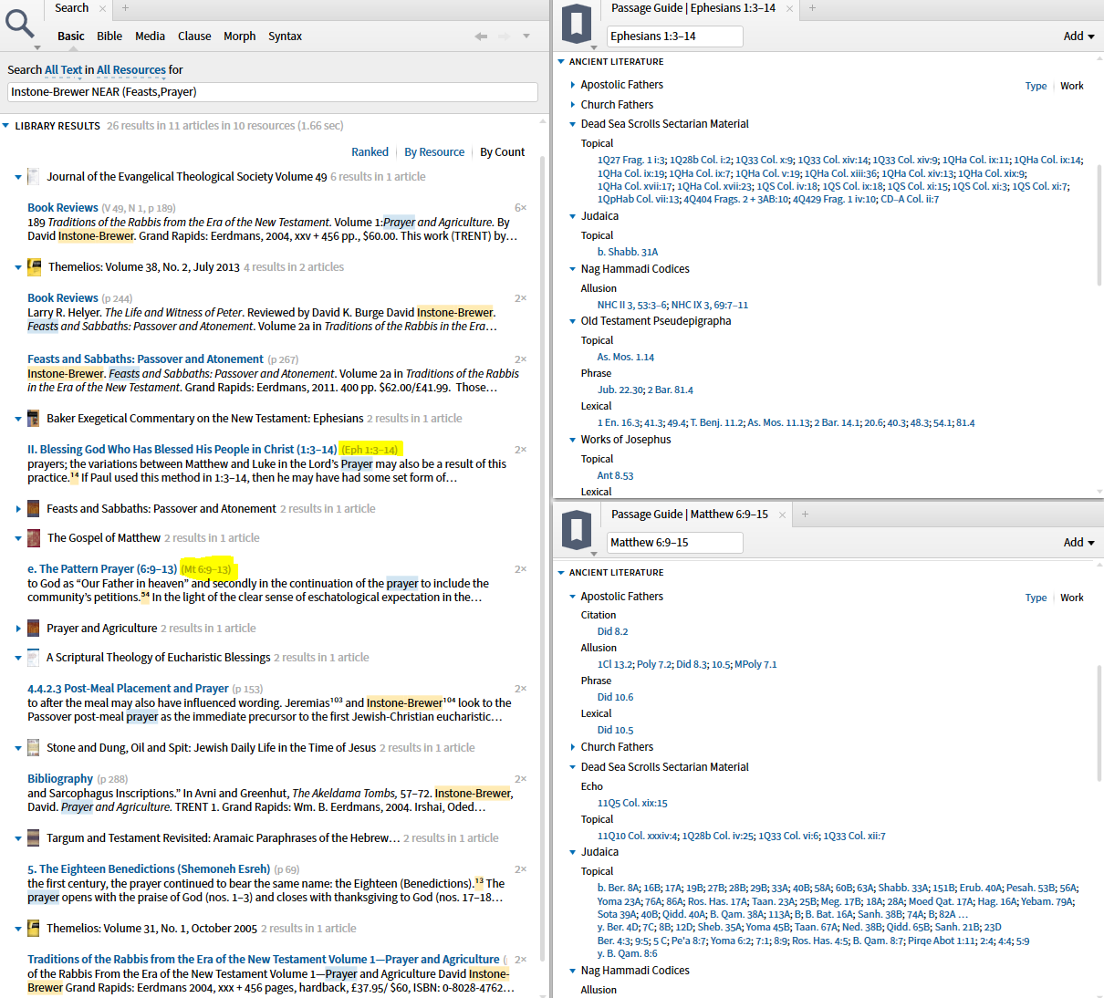 Any example(s) ? Basic search found two footnotes for Instone-Brewer in NT commentaries, but Passage Guides for those NT passages do not have links to Instone-Brewer under Judaica in Ancient Literature