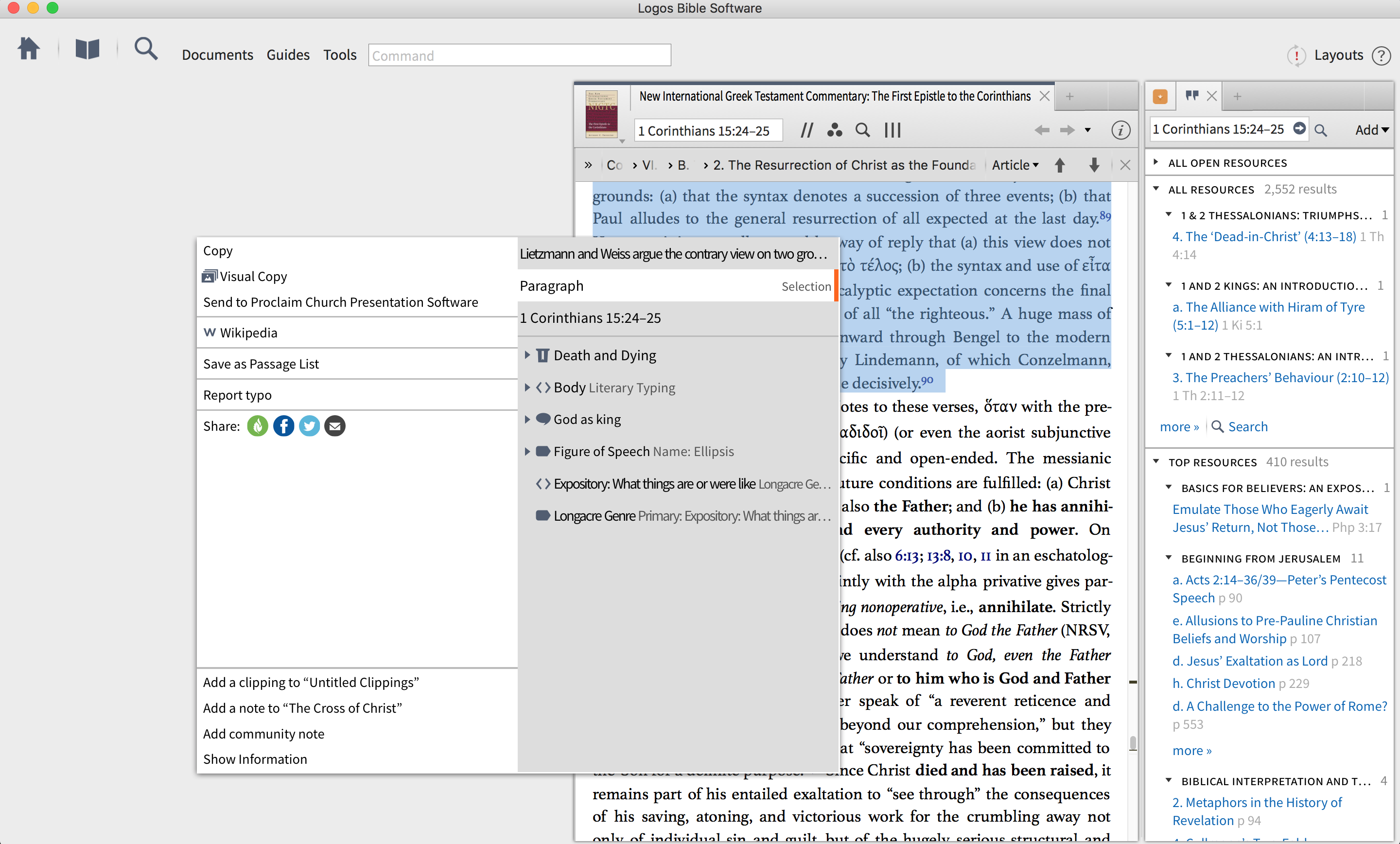 Is there a way to see a list of other resources in one's library which refer to the passage one is reading? I'm not talking about passage of scripture, but any passage. For instance say I am reading the first paragraph of Calvin's Institutes, and I want to see how later writers have interacted with this passage. Is there a quick way to see everyone who has interacted with this paragraph?