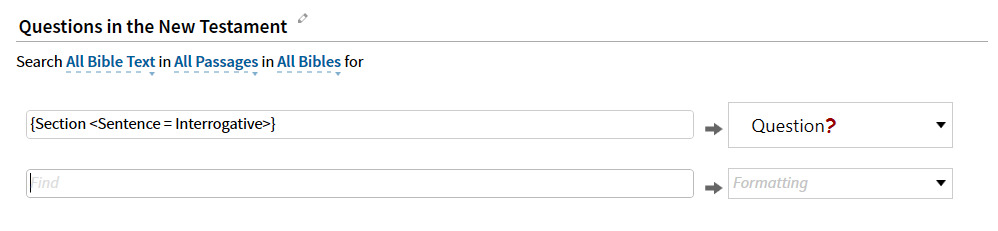 - Literary Type is revealed via Passage Guide (Literary Typing) or you can Search e.g. {Section <LiteraryType Allusion, Old Testament>} using terms from the Glossary. Most bibles can be searched for this.