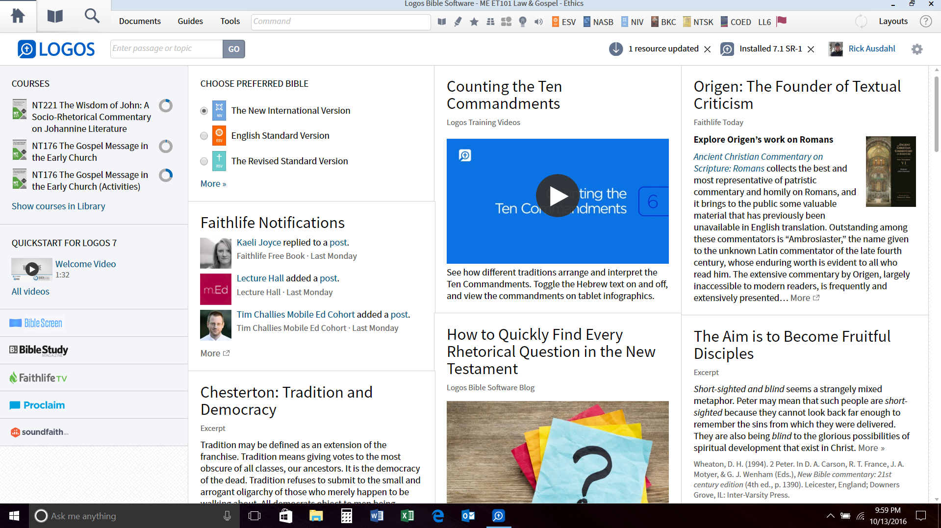 A while back while still running Logos 6, my Logos Home Page stopped using the entire width of the screen to display the Home Page info and it still looks this way in Logos 7. The unused column on the far right is the same width as the two columns just to the right of the sidebar that are being populated. I'm wondering if anyone else is experiencing this or something similar. Scrolling is also very sluggish and erratic. This only occurs on the Home Page. All my layouts are fine.