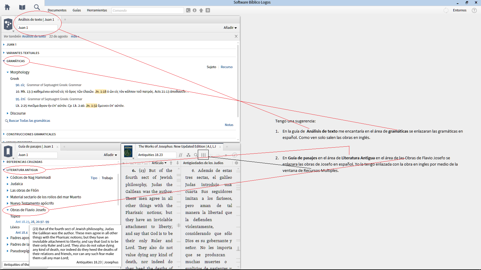 Tengo varias sugerencias para en las guías en español. Las cuales pienso que no deben de ser muy difíciles a los programadores de Logos o que quizás estarán ya disponibles en Logos 7 en español, pero por si acaso jajaja aquí van.