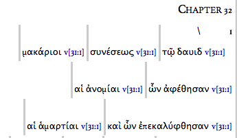 Here's what I see for Ps 32:1 in Tov's Parallel Alligned Heb Gk OT: