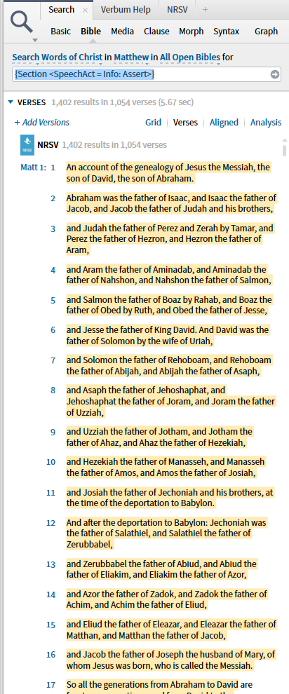 Why do the results include geneaology ... which certainly is not words of Christ?