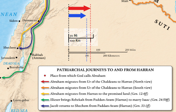 It appears that the scaling markers (that indicate the scale of the map) are incorrect, in part at least. This can be seen when comparing the scale included on the map itself, and the one that the Biblical Places tool updates dynamically according to zoom level. See diagram below.