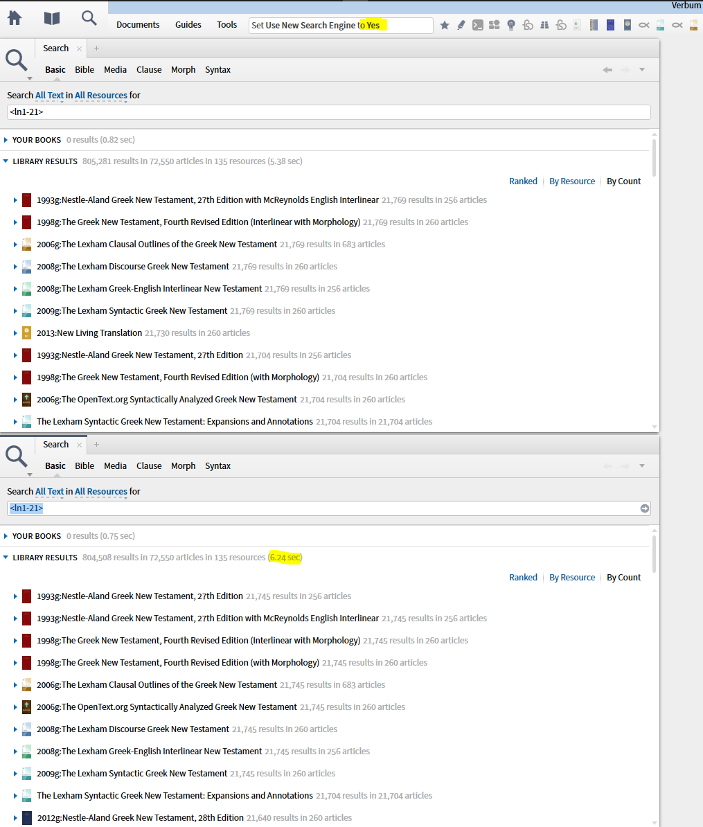 The time improve significantly when repeated, but this had not been necessary with non-reference searches; ("New" is always run first).