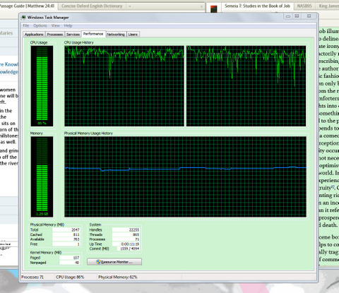 Now L4 wants to download 38 megabytes of something or other, so I work around it with just Firefox open. What a pain; I can barely move my pointer on the screen! Bring up Task Manager. Would you believe?