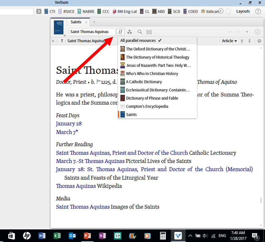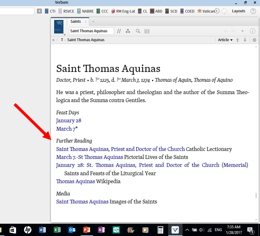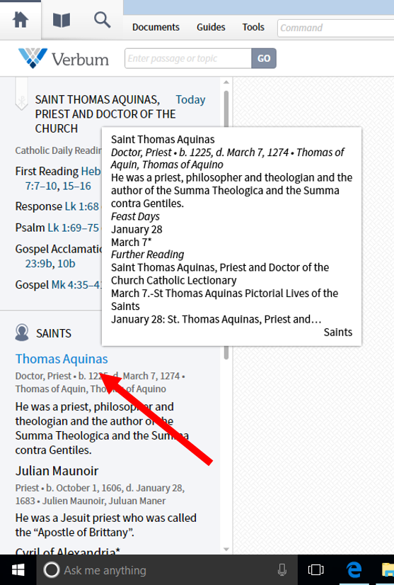 or - have a hotlink in the Catholic Lectionary where there is a name of a saint that takes one to the resource "Saints" by Verbum so they are only a click away?