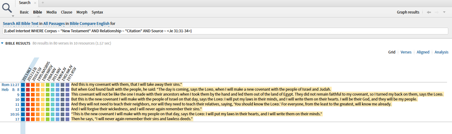 I want to find the quotations of the New Covenant in the book of Hebrews without doing to much work. In other words I want the computer and Logos to do it. This is the query I am trying: