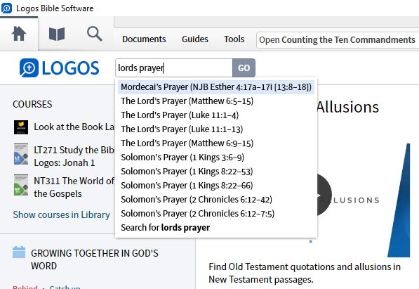 gooday it appears you have a bug in your search engine, today i was doing a study in the lords prayer and when i typed this in the search engine, all that was listed was a whole bunch of references for Esther and nothing on the lords prayer. now i tried this 3x times and got the same results.