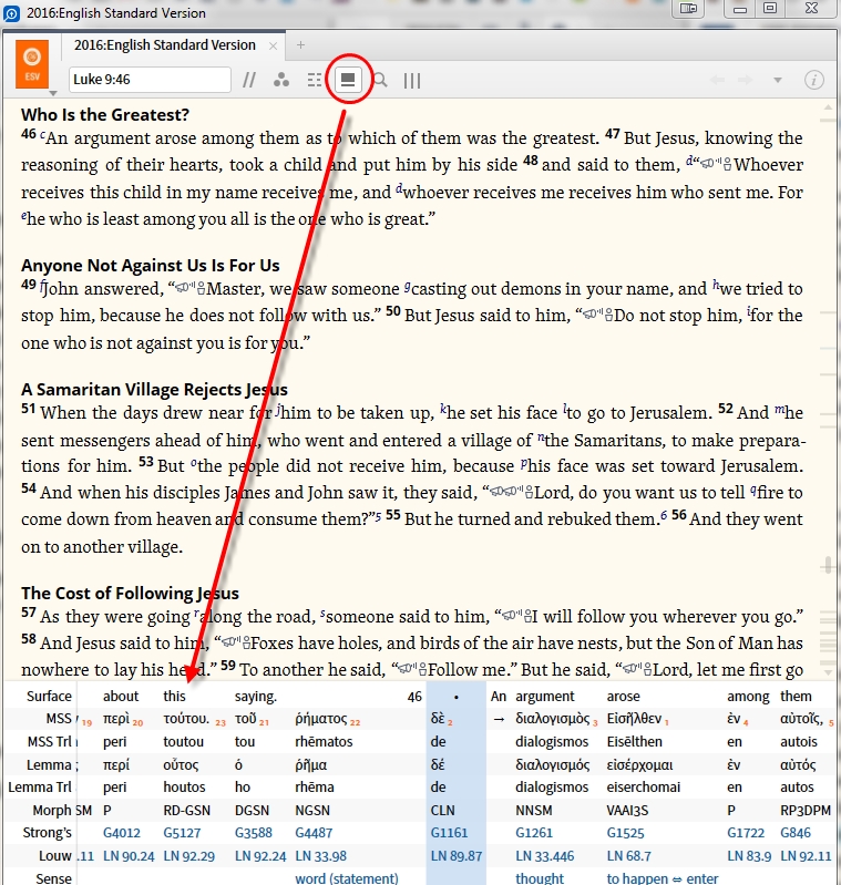 Welcome to the forums Terese. You can turn on and off the interlinear as seen below.