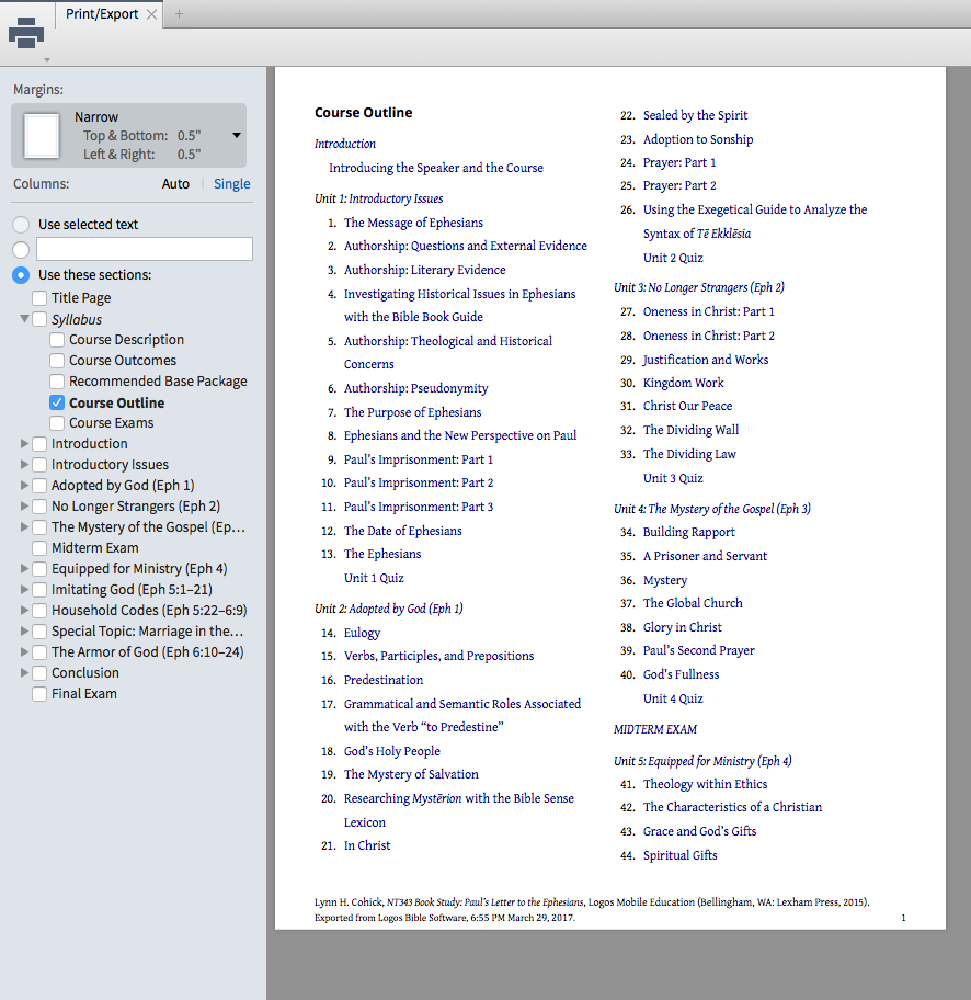is there a way to print out the table of contents for a mobile ed course? I know there is a way to do that from the panel menu for logos books but the panel menu for mobile ed doesn't include the same line items. Cann anyone help? Thanks much