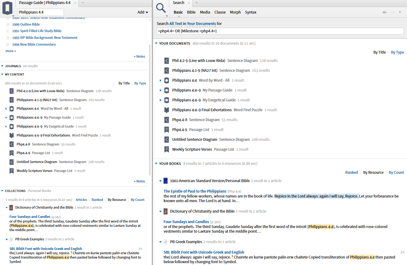 I am expecting to use the passage guide and have Logos report in 'My Content' or Commentaries when I enter a passage that is referenced in the personal book. I was hoping I did not have to enter tags in the document and it does not seem like I should since Logos discovered the Bible references.
