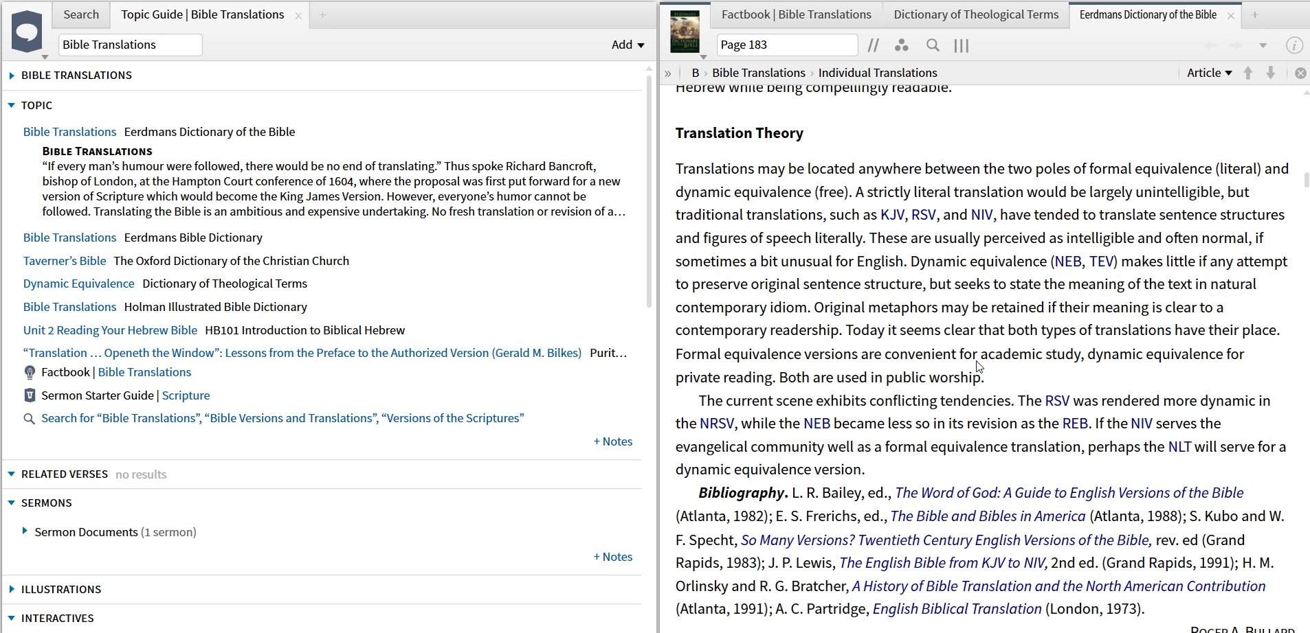 Try running a Topic Guide for "Bible Translations" and see what resources you have to advise on this
