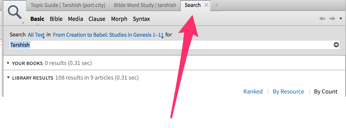 Please add the search-word (e.g. Tarshish) in the tab, like the Topic Guide and the Bible Word Study etc.