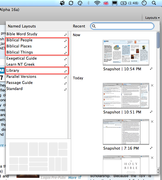 If I need to return to where I was before, I can use the Snapshots in the same Layout menu to reopen the previous window layout.