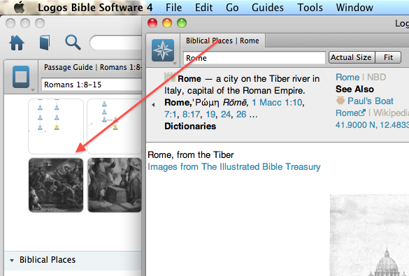 I like the fact that L4 works in one window and have been frustrated that the Library, Biblical People, Biblical Places and Biblical Things open in a separate window. However, I have found today that I can drag these panels into the main window. Drag the tab in the direction of the arrow in the screenshot below: