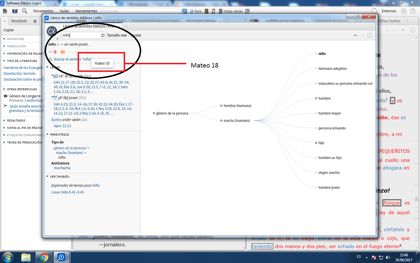 Paso 3. Hago un clic en Buscar el sentido “oveja’’ lo cual me lleva a mi RVR60 para hacer una investigación en todos los lugares de mi biblia en los que se encuentre esta palabra.