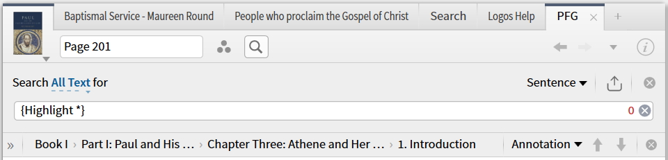 I am reading a book in my logos app for a book review. I want to go back and only look at my highlights from the book to use to write my paper. How do I only see my highlights from the book?