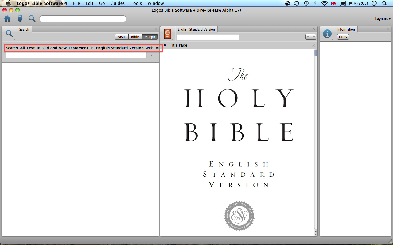I'm only running L4 on a Macbook and not on a desktop machine (my wife and I sold our iMac about a year ago and we've now got a MacBook each). I'm running into a problem in a couple of areas where L4 requires so much real estate that it punishes those of us with smaller screens. Consider, for example, the screenshot below. I've not cropped it down so you can see how I've laid out the whole screen. I don't believe that I'm cramming too much into one view here, but I cannot really see the options for the morph search (highlighted):