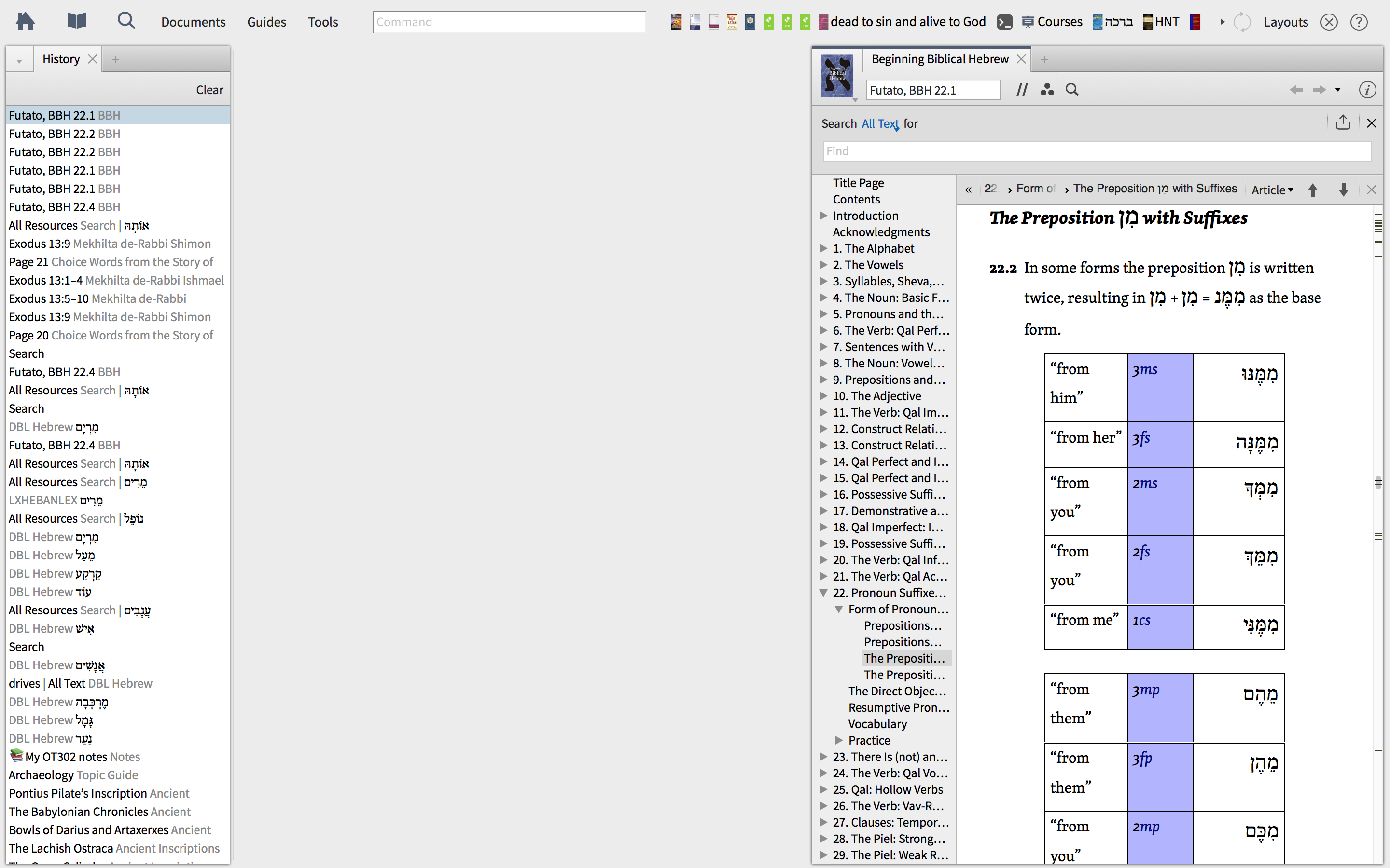 When navigating (via TOC) or trying to scroll to BBH 22.3 The Preposition כְּ with Suffixes, the program consistently hangs.