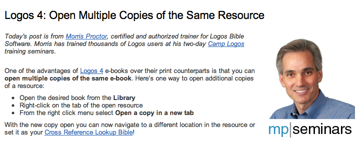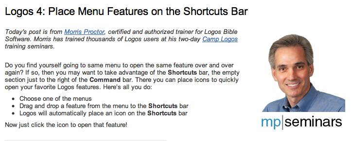 There are some really smart tips here which I'd like to use in Logos 4 Mac. But they don't seem to work the way Morris describes them for Logos 4. Here they are:-