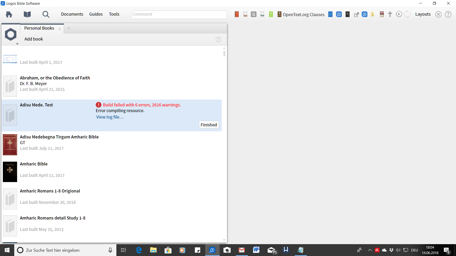 It looks like you are working on a Bible and you are using individual files for every book of the Bible. You have issues with milestones, blank articles and headings. I suggest you start with one book (Genesis for example) and make sure it compiles fine before adding the the next book. That way you know which file/book is the one with issues. [Warning] closing field heading that is already closed means you are missing {{field-off:Bible}} at the end of a verse.[Warning] Consecutive duplicate Milestone Start for data-type bible: bible.1.2.1 something is wrong with the Genesis File at chapter 2 verse 1 and Logos finds the same verse twice.