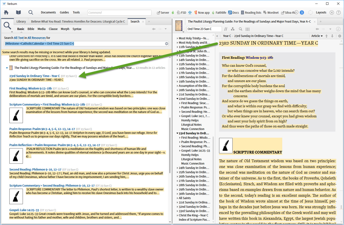 Note I check only one liturgical date. The same issue likely exists elsewhere. This error has not been noticed most likely because one cannot do a milestone search from the Context Menu and there is no Guide section that uses the index. I hope that will be changed in a future release (near future).