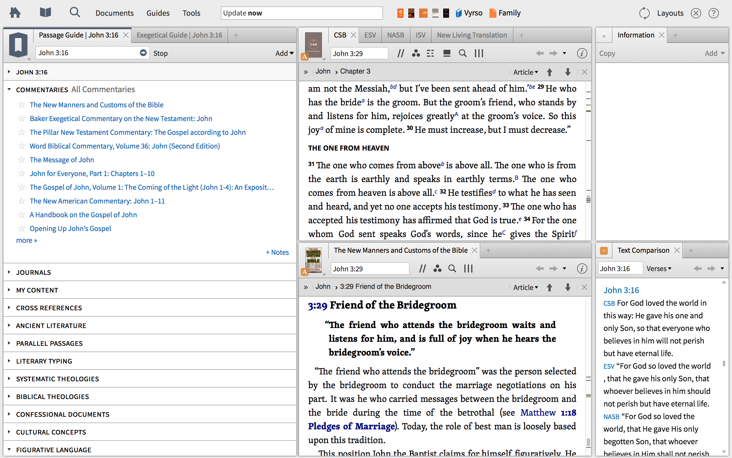 You may be thinking of what happens when you use the "Go Box" from the home screen. When I type in a passage (i.e. John 3:16), I get what you see in the screenshot below. Notice that there are many panels. There is also a passage guide AND an exegetical guide: