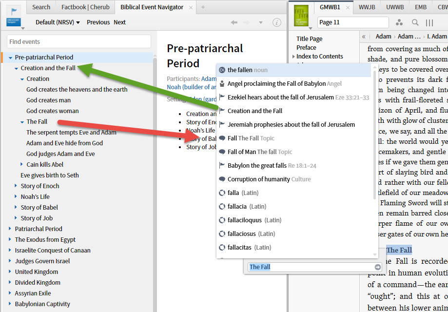 I'm trying to do some minimal community tagging of Hastings, James, ed. The Greater Men and Women of the Bible: Adam–Joseph. Edinburg: T&T Clark, 1913. and found that there is no event for The Fall despite it appearing in the Biblical Event Navigator. Other grouped events do appear. Should the topic record be an event? I understand that you need to prioritize your work but it is discouraging to hit roadblocks on items that are not obscure. What is the best way to bring these to your attention and get them resolved without becoming a pest? I've appreciated your recent responsiveness. Thank you.
