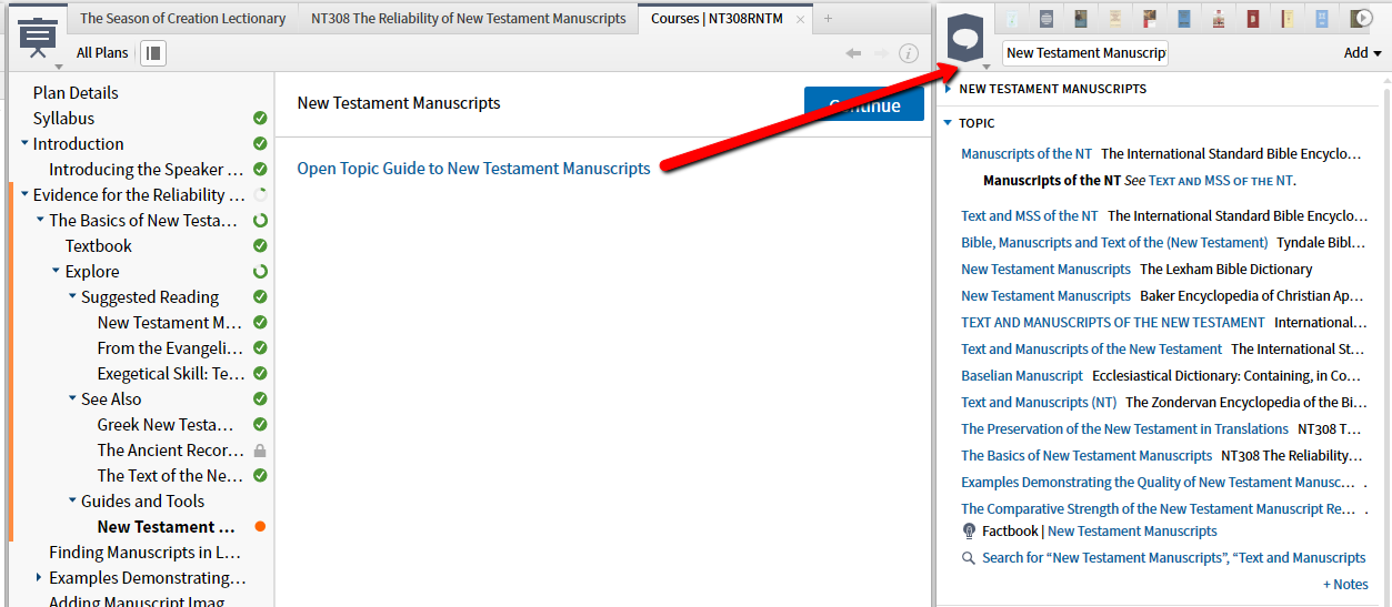What was I supposed to do with the topic guide to the new Testament manuscript?