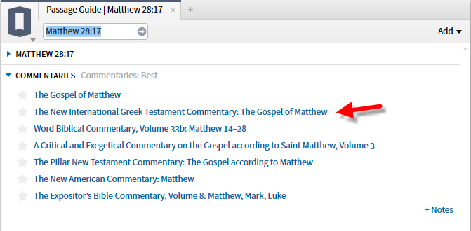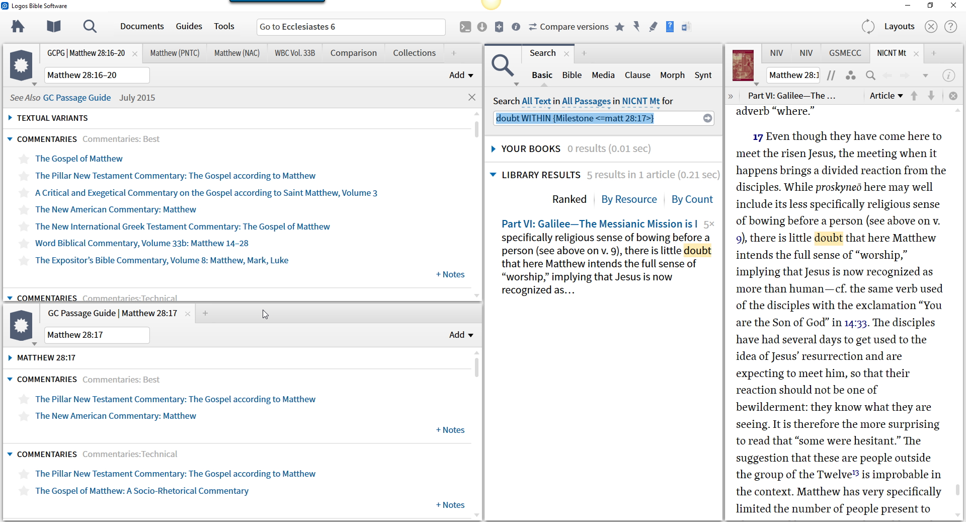 I'm doing some work on Matthew 28:16-20 and ran a PG on verse 17 (bottom left of screenshot).