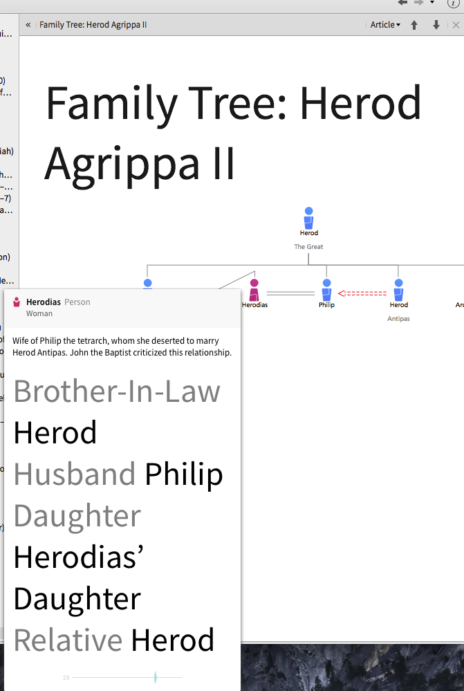 The panel scaling (?) is making the tooltip hard to read. It is saying that Herodias has a relative, a daughter, whose name is “Herodias’ Daughter” (because we have no specific name in the biblical text).