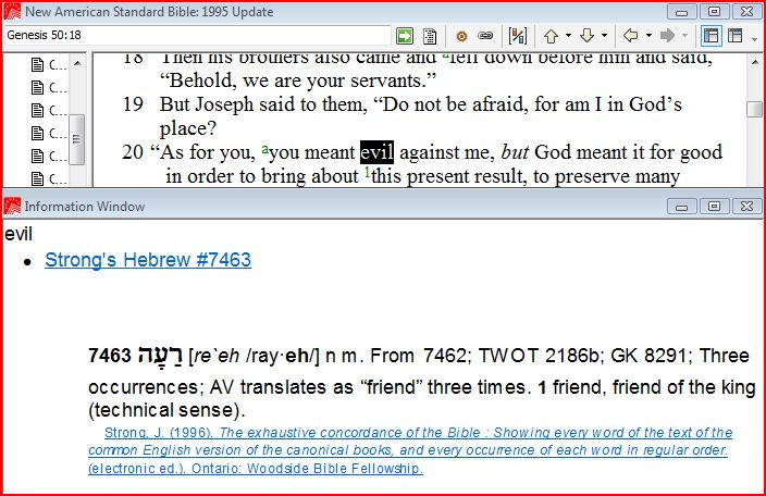 As the graphic below shows, the word "evil" is tagged incorrectly in L3 when using NASB. The automatic Strong's pop-up window (one of the worst tragic losses in the move to L4) shows the same mistake as the Info window shows in this pic.